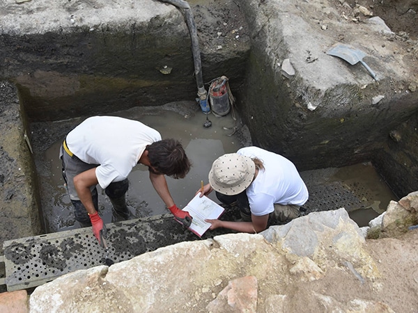 Cette découverte inattendue permet de prolonger le chantier au-delà du délai prévu initialement. Les premières datations établissent cette construction au 16ème siècle mais les archéologues continuent de creuser dans le temps révélant des bâtis plus anciens et des douves. Un puit (?) du 11ème siècle est mis au jour. Et… incroyable! Le bord en clayonnage et le ponton qui permettait au seigneur de sortir le poisson de ces douves sont toujours en place!